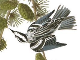 April 24. P. M. — Up Assabet, and thence to Cedar Swamp. . .The white cedar female blossoms are open. Hear amid the white cedars the fine, clear singing warbler of yesterday, whose harsh note I may have heard the 18th,very clear and fast. Go to new trees, like cedars and firs, and you hear new birds. I have also observed that the early birds are about the early trees, like maples, alders, willows, elms, etc. New plant (Racemed andromeda) flower-budded at Cedar Swamp amid the high blueberry, panicled andromeda, clethra, etc. – upright dense racemes of reddish flower-buds on reddish terminal shoots. April 24, 1854